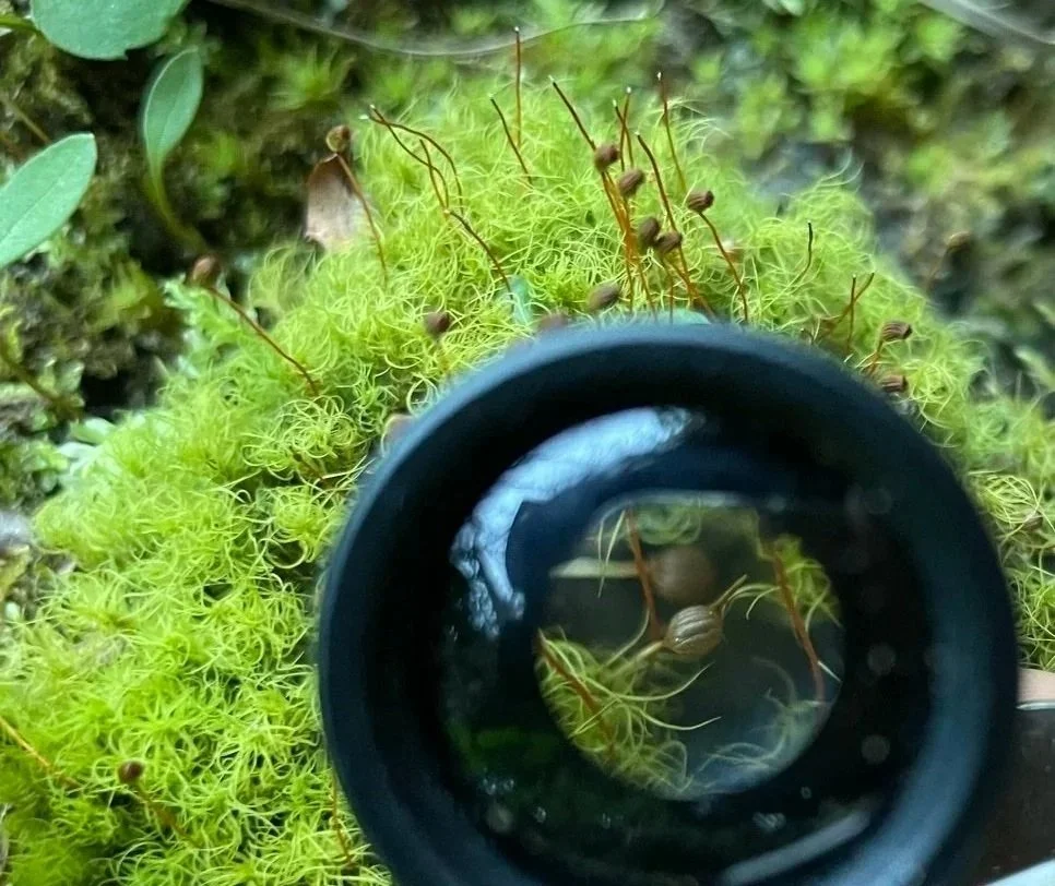 *Always create sub packets with fungal fruitbodies to place inside your larger specimen packet (e.g., there are #8 fruit bodies on this Polytrichum commune stem)